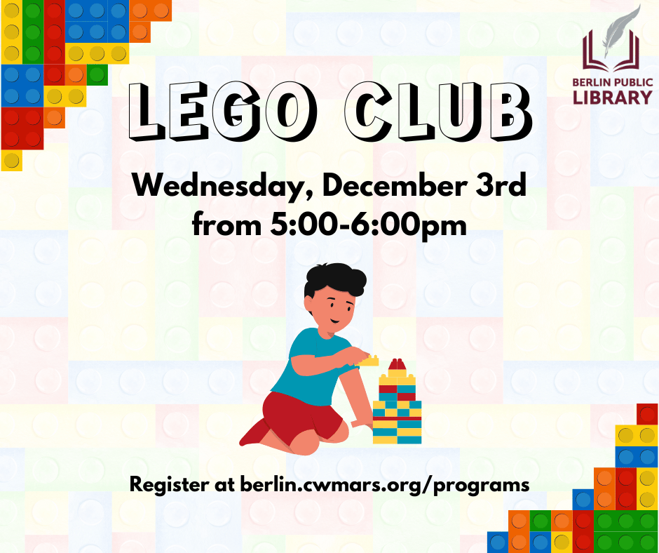 Elementary and middle schoolers are welcome to come and enjoy Lego Challenges and expand their creativity and construction skills.