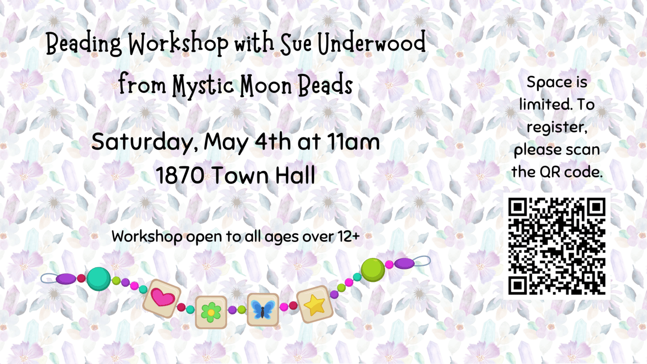 Sue Underwood of Mystic Moon Beads will guide participants through selecting beads and placing them to design and create their own unique bracelet. Space is limited, register today!